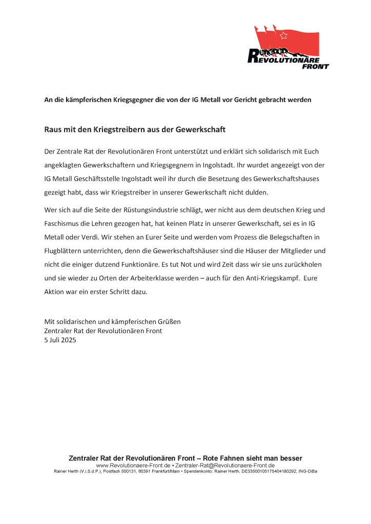 Aktionen Solidarität mit den Trambahnfahrern, die das Fahren der Bundeswehrtram verweigern! Rainer Herth Aug. 1, 2025
