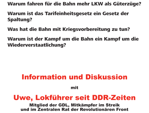 WeiterlesenWas wir aus dem Streik der GDL-Lokführer lernen müssen München: Dienstag 26.10. – Frankfurt am Main 27.10. – Nürnberg 28.10.…